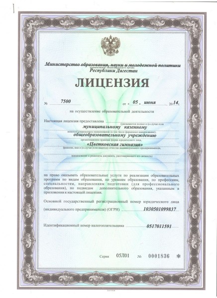 Полное наименование образовательной организации* Муниципальное казённое общеобразовательное учреждение «Цветковская гимназия» Кизлярского района Республики Дагестан